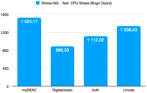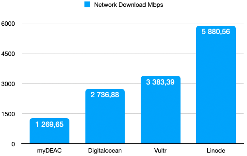 In our pursuit of determining the best performance among the leading cloud providers, we conducted a comprehensive comparison of DigitalOcean, Vultr, Linode, and myDEAC. Our comparison was based on their respective virtual machine (VM) offerings in Europe, with VMs sharing common specifications of 1 vCPU, 1 GB of RAM, SSD storage between 25GB - 30GB, shared CPU, local storage space, and operating on Ubuntu 22.04 LTS.